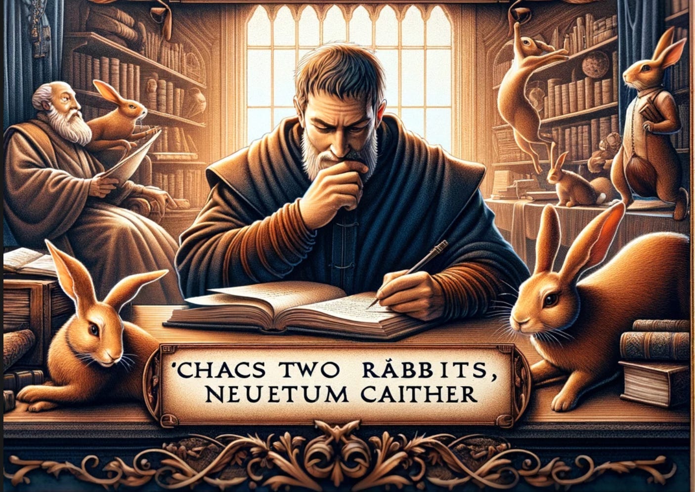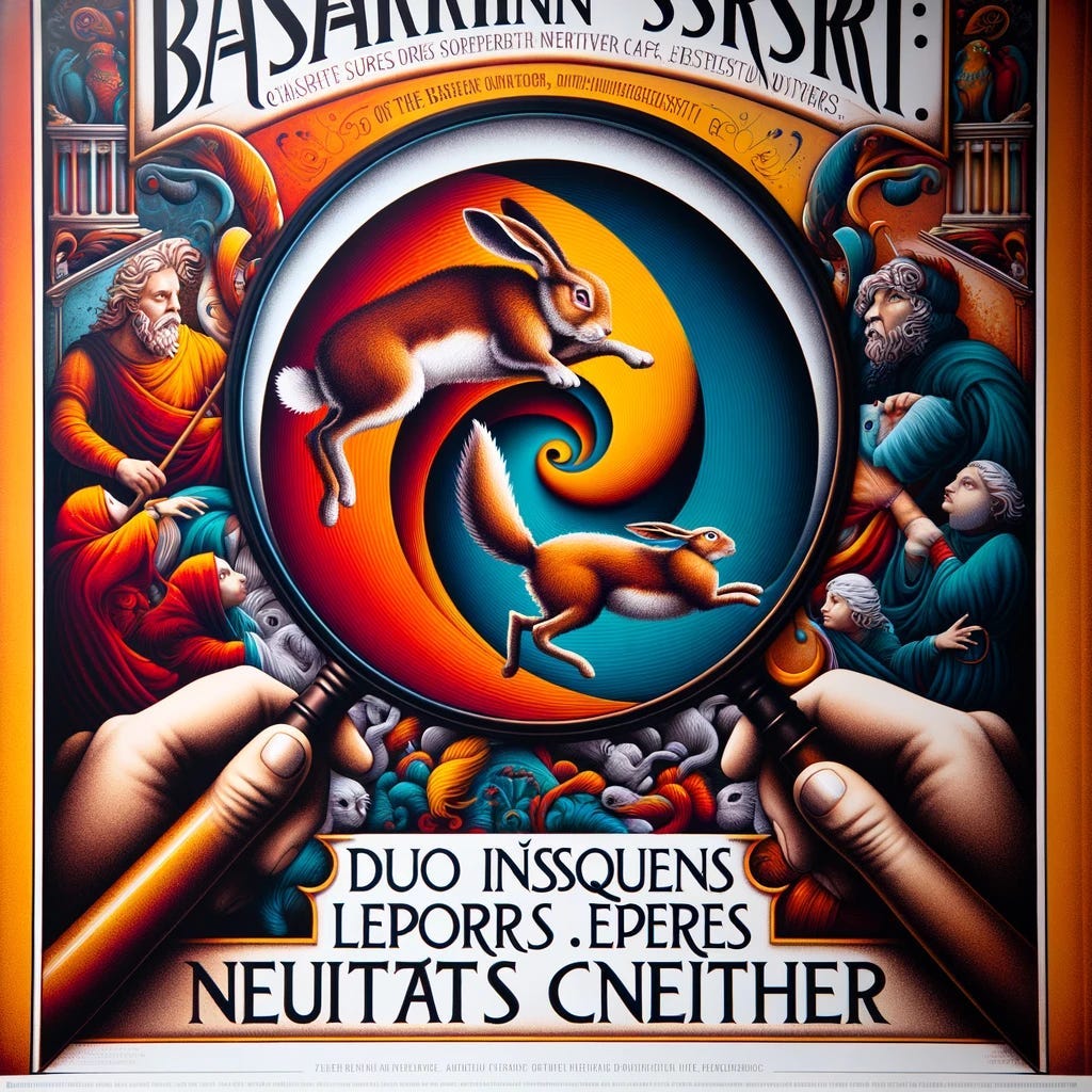 Erasmus, "Duos insequens lepore's neutrum capit" atasözünü bu kitapta, 2236 numaralı atasözü olarak listeler ve bunun Yunanca karşılığının "Δυοῖν ἐπιθυμήσας οὐδετέρου ἔτυχες" (iki şeyin arzuladığı hiçbirine ulaşamadı) olduğunu belirtir. Bu atasözünün Latinceden çevirisi ise şöyledir: