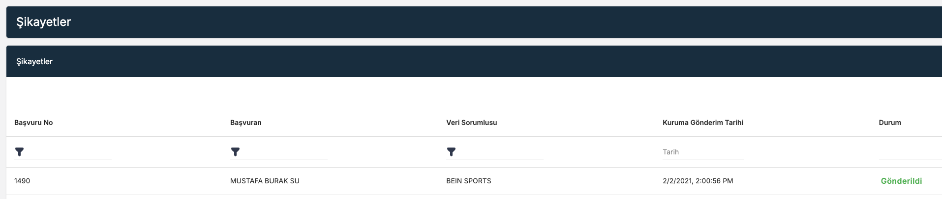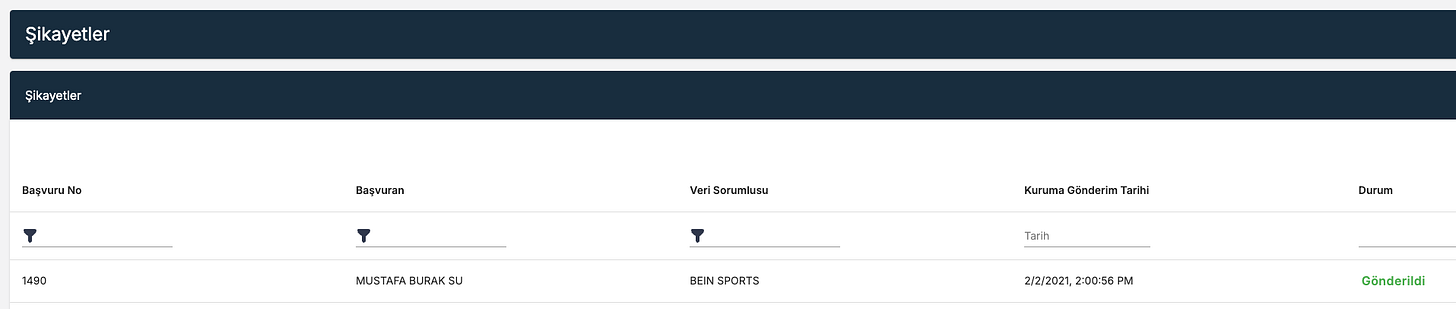 Hemen aşağıda 2021’den KVKK’ya yapılmış bir şikâyetim var.