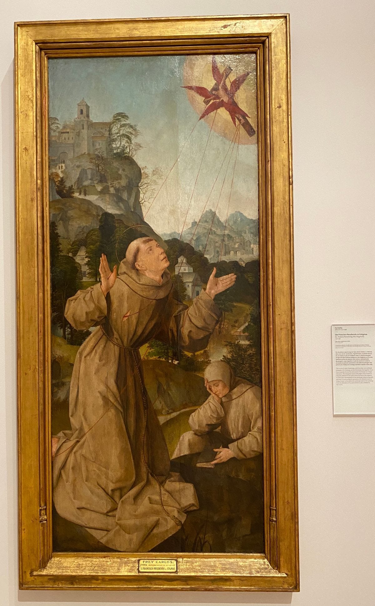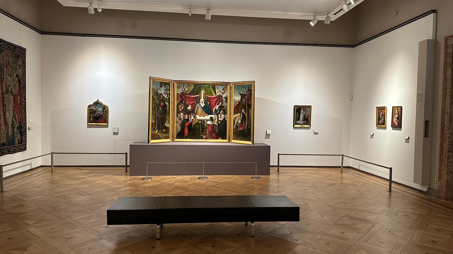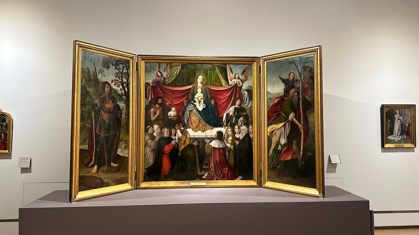 Her serginin ya da koleksiyonun görece daha kıymetli eserleri vardır. Bu eserleri ya başındaki kalabalıktan ya da karşısına konulan banktan tanırsınız. Karşımdaki eser, gazino eğlencesinin sonunda sahne spotlarının altında beliren bir assolist edasıyla, müzedeki spotların altında kendi hikayesini söylüyordu. Banka oturmadan hemen önce, ana hikâyenin yanındaki panellere ayrı ayrı baktım. Bebek İsa ve annesi Meryem hikayesi orta panelde, Aziz Sebastian ve Aziz Christopher yan panellerde resmedilmişti.