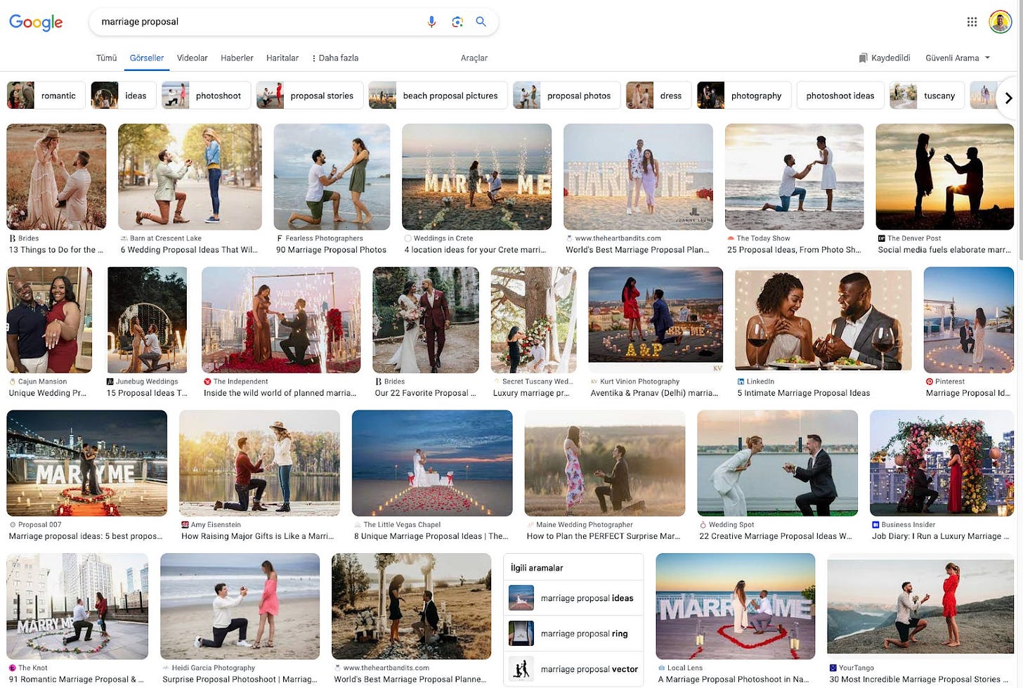 1950’lerden sonra, “A diamond is forever” üzerine inşa edilen kampanyalar, Hollywood yapımları, televizyon dizileri, reklam ve tanıtımlar ile kültürel bir değişim yaratılıyor ve pırlanta yüzük üzerine bir anlam inşa ediliyor. Bugün bu etki yüzünden diz çöküp, pırlanta bir yüzük ile evlilik teklif etmek, minimum evlilik standartı olarak kabul ediliyor. Google görselleri benden daha iyi anlatıyor konuyu: